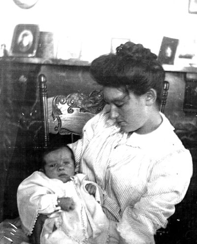 Celia Sweet holds their son Alton Relue Sweet. Alton was born April 15, 1906, just three days before the San Francisco earthquake. Back to the edition of: July 2002