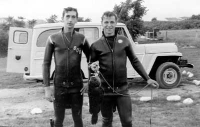 This photo shows Ed Vogel (left) and Bob Palachek (right) coming back from a dive with the catch of the day in August 1964. Back to the edition of: March 2003