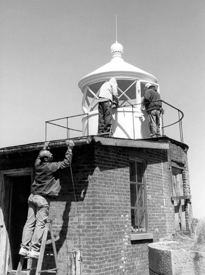 Volunteers hard at work restoring New York’s Fort Wadsworth Lighthouse. Back to the edition of: July 2003