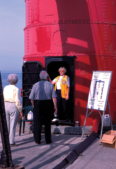 Linda Bosma of the South Haven Lions Club greets visitors to the South Haven pier light during Harborfest, June 14th. Back to the edition of: August 2003