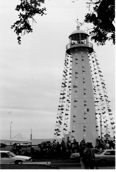 Biloxi Lighthouse during its 150th birthday celebration in 1998. Photograph by Walter W. Hutchins of Gulfport., MS. Back to the edition of: December 2003