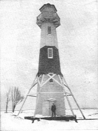This photograph shows Ed Burge posing in front of the Elm Tree Lighthouse when this story was written in 1924. At that time he had served at the Elm Tree Lighthouse on Staten Island near New York City for 13 years. After 34 years of service it was an easier berth for him. Yet at the time he said he really missed being in the battered, storm-beaten offshore light. Back to the edition of: Jan/Feb 2004