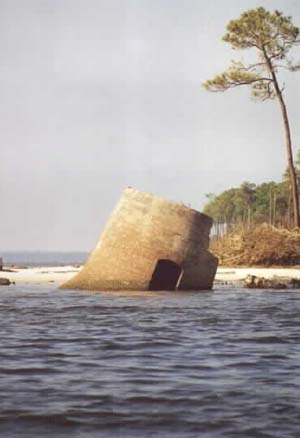 Only the bottom of Round Island Light, submerged in water, remains after the station was destroyed by Hurricane Georges on September 27, 1998. Back to the edition of: November 1998