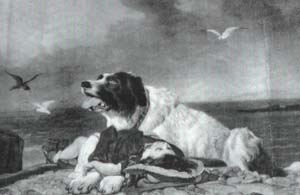 Milo, one of the most famous dogs in lighthouse history, is depicted here from a painting called, "Saved", painted by Sir Edwin Henry Landseer. The child who posed for the famous painting depicting one of the dog's many rescues was Fred Taylor, son of Keeper George B. Taylor. Back to the edition of: February 1999