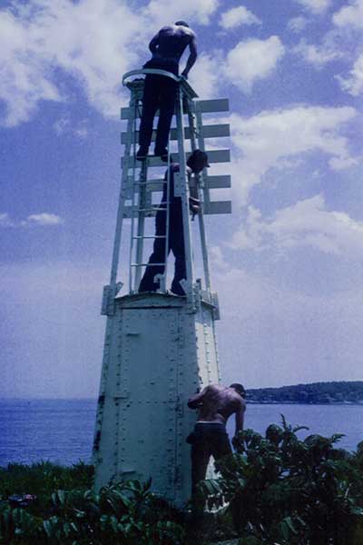 Painting the Crow Island beacon in 1962. Back to the edition of: July 2005