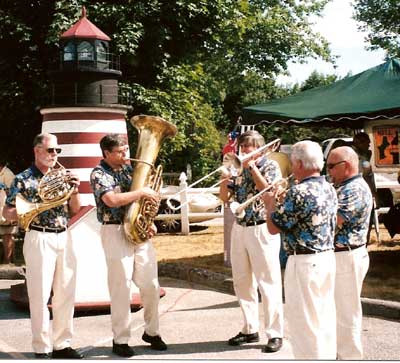 The Blue Hill Brass Quintet performs patriotic music at the grand opening of the Museum of Lighthouse History in Wells, Maine. Back to the edition of: October 2005