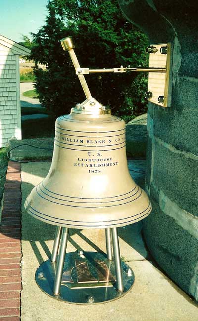 The restored Minot’s Ledge Lighthouse fogbell in place next to the Minot’s Ledge Lighthouse replica on Government Island, Cohasset, Massachusetts in 1994. Back to the edition of: October 2005