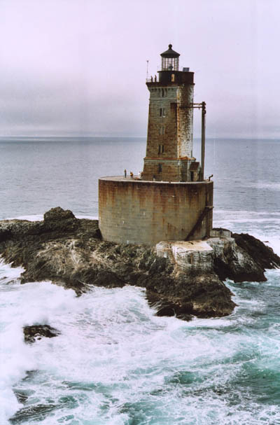 Approaching the lighthouse from the southeast. The 90-foot boom that once lifted supplies and crew to the lower landing has been relocated to shore where it is undergoing restoration. The boom and many other artifacts from the lighthouse will be on display in a museum, which is being planned for the Crescent City harbor area. Back to the edition of: Jan/Feb 2006