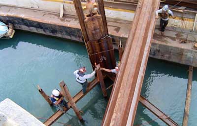 Work on a seawall around the rear range light began in October 2005. Courtesy of SOS Channel Lights. Back to the edition of: April 2006