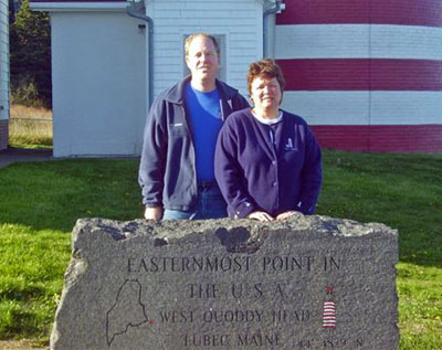 Steve and Junia Lehman near West Quoddy Head Lighthouse and the marker for the easternmost point in the U.S. Courtesy of Junia Lehman. Back to the edition of: July 2006