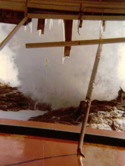 A close-up view of the damaged garage, showing the waves breaking and icicles. Back to the edition of: December 2007