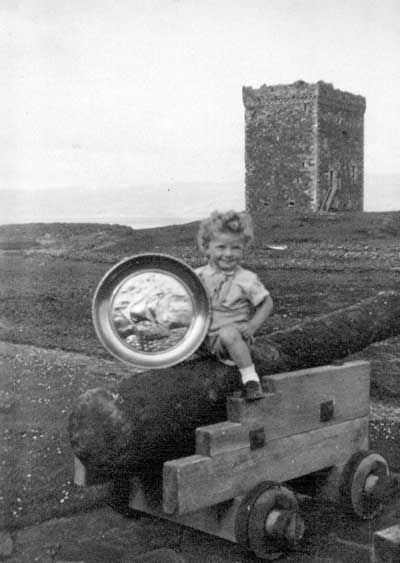 Peter McLean explains: “This is the Keep, which is on the opposite side of the island from the lighthouse. The young man in the photo is my nephew, Iain. Iain is now 59 years young! The plate he is displaying was a prize won at a baby show at the little town of Millport on the Greater Cumbrae. That’s a genuine cannon he’s sitting on.” Back to the edition of: March 2008