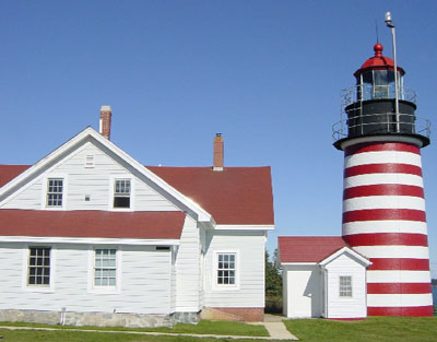 West Quoddy Head Light right after it got a new paint job in October 2003. Photo by Robert J. Bachman.