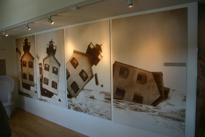 This series of photographs at Tuckerton Seaport shows the unfortunate fate of the original Tucker's Island Lighthouse. The pictures were taken in 1927 by Paul Rider, nephew of Arthur Rider, Tucker's Island Lighthouse keeper at the time. Courtesy of Tuckerton Seaport.