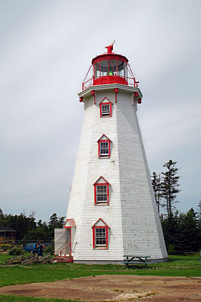 Date Established: 1853 Date Present Tower Built: 1853 Date Automated: 1986 Fog Signal: Horn discontinued. Current Use: Active aid to navigation. Open To Public? Yes. Directions: Panmure Island and the lighthouse are reached by a highway from the mainland. According to the official website of the government of PEI: On Route 17, the King's Byway, look for the turn-off to Panmure Island. The lighthouse is in view while driving across the causeway. After crossing the causeway, take the second driveway to the right.
