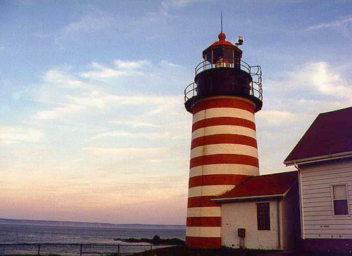 Directions: From ME 189 east, take a right onto South Lubec Road, marked with a "Quoddy Head State Park" sign. Follow for about 4.5 miles to the end. Parking for Quoddy Head State park is free; there is a donation box for upkeep of the park. Trails lead from the parking area to the lighthouse and along the bluffs for scenic views. Mapquest URL: Click here to get a map to this lighthouse! Listed on the