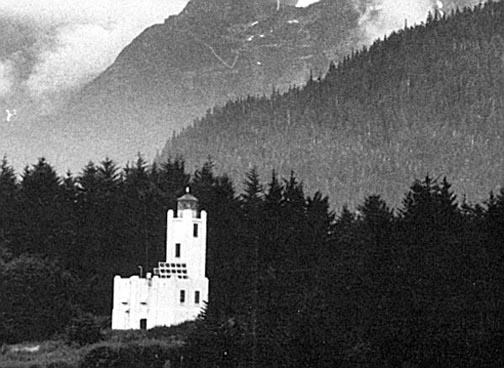 The society plans to establish a Southeast Alaska Maritime Interpretive Center here. A Fresnel lens from this lighthouse is on display at Alki Point Lighthouse in WA. Tower Height: 51 Height of Focal Plane: 86 Description of Tower: Concrete cylindrical tower with red lantern on roof of square concrete fog signal building.