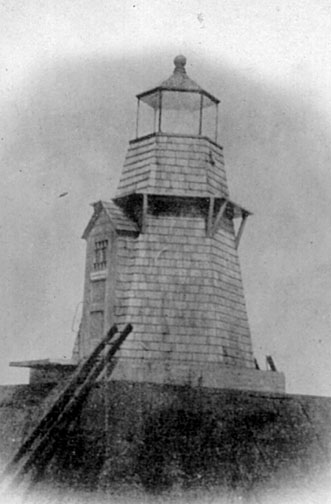 Tower Height: 13 Height of Focal Plane: 25 Characteristic and Range: Fixed white, visible for 10 miles (1917). Description of Tower: Unpainted, hexagonal wooden tower on a red octagonal pier.