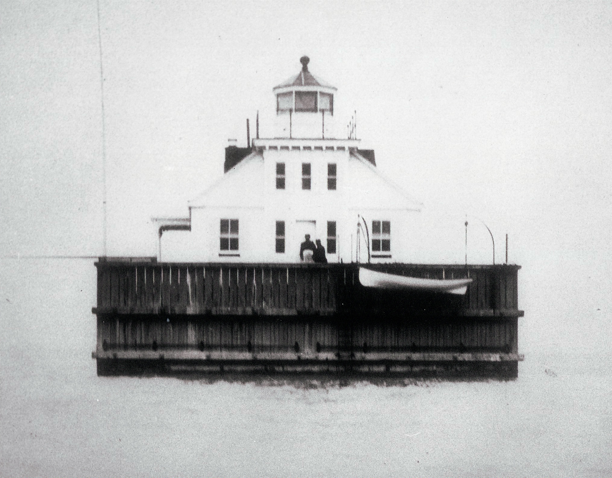 Notes: This light was replaced by a skeleton tower in 1926. Tower Height: 30 Height of Focal Plane: 34 Characteristic and Range: Fixed white. Description of Tower: White square tower on a dwelling, on a red foundation crib.