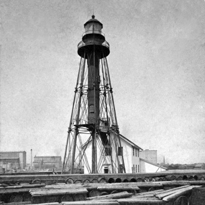 The no longer standing Chicago Pier Lighthouse in Chicago, Illinois with its attached keeper’s house. This house was later moved to become the lighthouse keeper’s house in Frankfort, Michigan. (Courtesy Terry Pepper collection.) Back to the edition of: Mar/Apr 2012