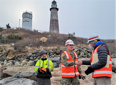 Col. Matthew Luzzatto, former commander, New York District, U.S. Army Corps of Engineers visiting the project team during construction on the Montauk Point Coastal Resiliency Project. (U.S. Army Corps of Engineers photo) Back to the edition of: Jan/Feb 2024