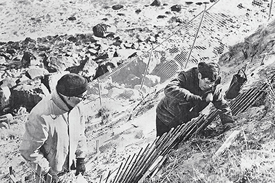 Giorgina Reid using her reed terracing method to stabilize the Montauk Point Lighthouse cliffs in the 1970s. (Photo courtesy of Dan’s Paper) Back to the edition of: Jan/Feb 2024