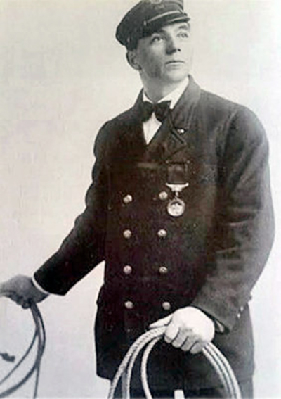 Surfman Ingar Olsen of the Milwaukee Life Saving Station responded to the call from Georgia Stebbins and was able to save one of 16 men who were trapped in a chamber in Lake MIchigan. He received a commendation for his heroic efforts. (Photograph courtesy Stebbins Family) Back to the edition of: Jan/Feb 2024