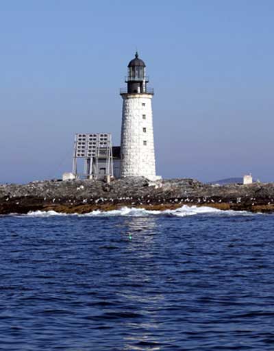Although Halfway Rock Lighthouse looks good from this photo, looks are deceiving. The lighthouse is in serious need of repairs and restoration. Back to the edition of: Aug/Sep 2004
